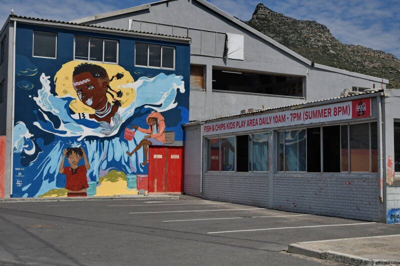 In Muizenberg wurden noch die berühmten bunten Strandhäuser besucht. Weil Noah eingeschlafen war, blieb er mit Opa im klimatisierten Bus und Oma mit Tochter nutzten die Zeit für einen Strandspaziergang.