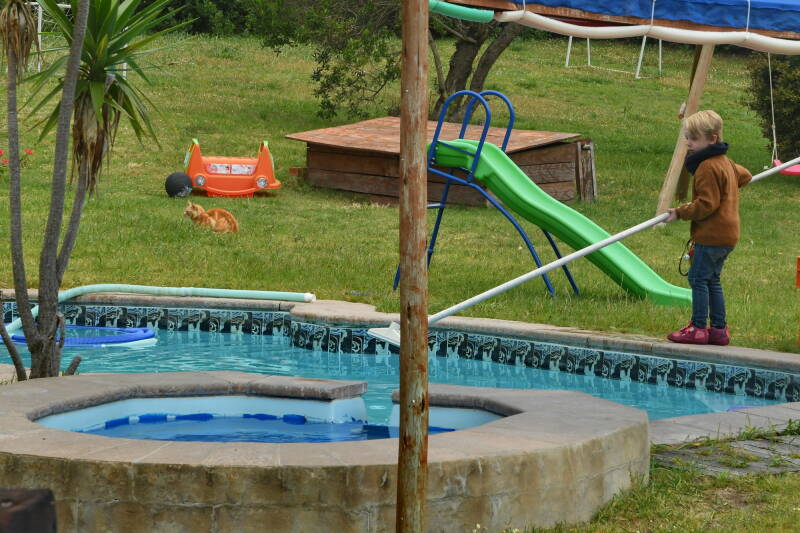 Das Gelände ist sehr weiträumig angelegt, womit die Bezeichnung "Farm" stimmt. Es gibt einen tollen Garten, in dem gerade das Frühjahr einzieht. Anmerkung: die Jahreszeiten sind hier gegensätzlich zu den unseren. Hier geht es nun langsam auf den Sommer zu.