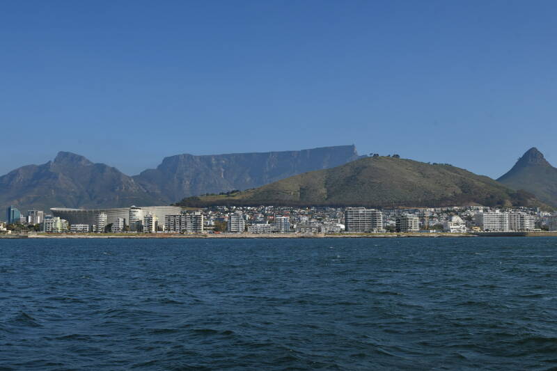 Dann ging es für uns an die Waterfront. Der Hafen von Kapstadt ist prächtig gewachsen und läd ein, die vielen Geschäfte und Restaurants zu besuchen. Wir hatten Hunger und suchten erst einmal nach einem passenden Restaurant. Der Blick auf den Tafelberg war inklusive, es gab mittlerweile keine Wolken mehr. Aber leider auch nicht das berühmte Tischtuch, dass oben vom Tafelberg fällt und sich auflöst.